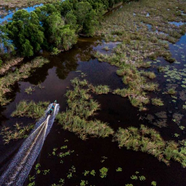 Explore the beautiful wetlands of the coastal area during the wetland boat excursion. The tour starts at the village Johan and Margaretha. From here, you will leave for the photogenic wetlands in small fishing boats, through open waters and narrow passages in the mangrove trees. The high stilt roots of the white, black and red mangrove trees form an imposing labyrinth. During the journey, the guide will tell you many interesting facts about the swamp and its beautiful flora and fauna. The wetlands are home to hundreds of bird species such as the scarlet ibis, which derives its color from the shrimp it eats, the heron and the crab-eating eagle. You can also see caimans, capybaras and ocelots.