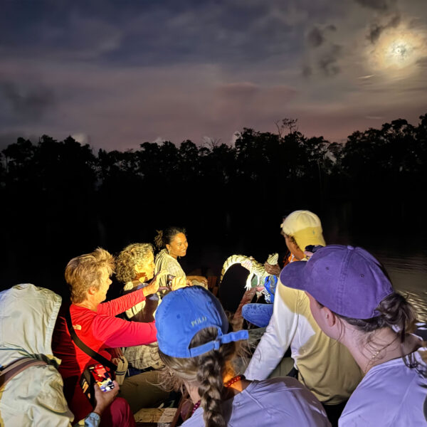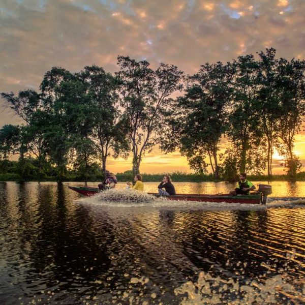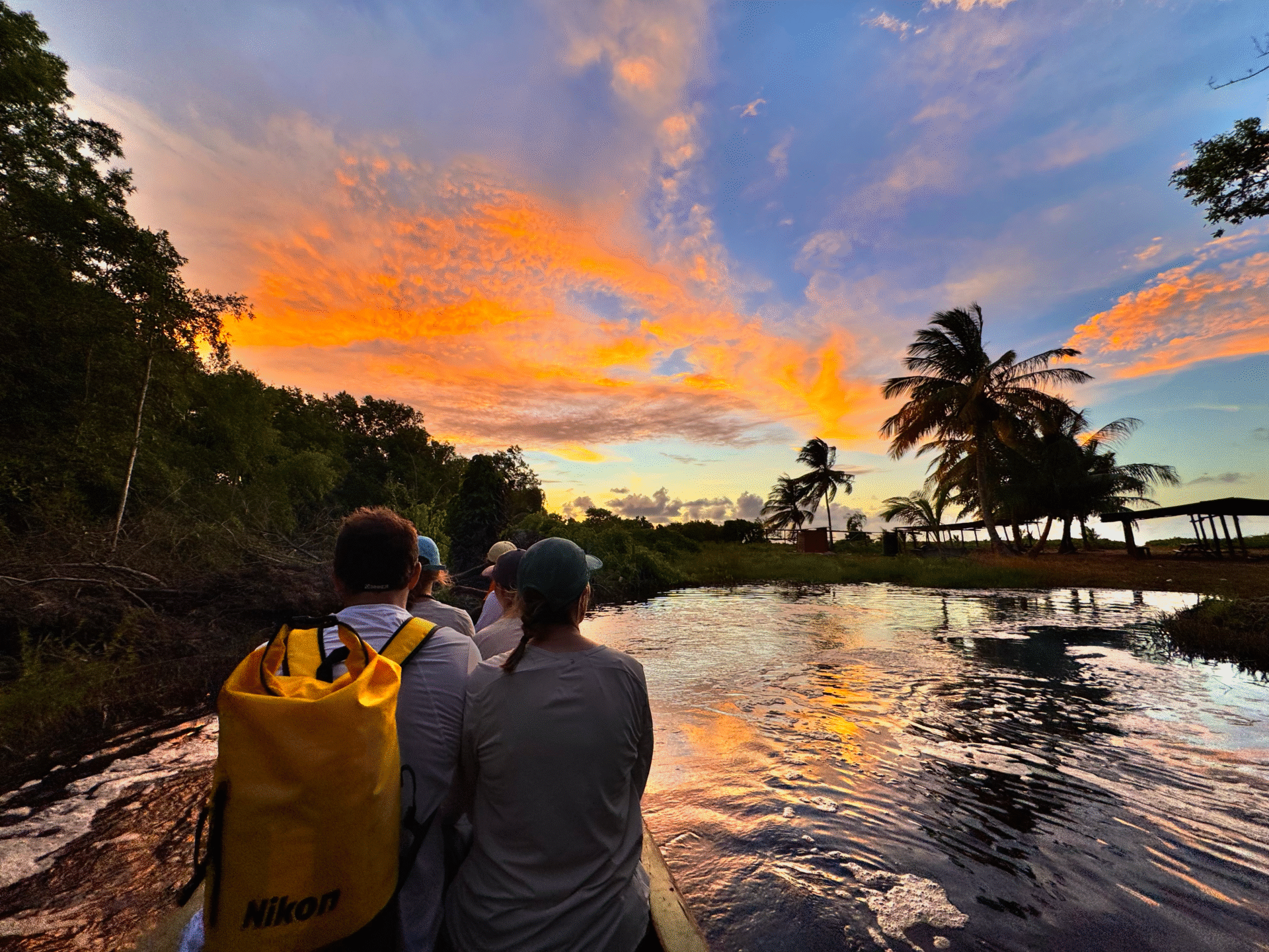For those seeking a bit more adventure, an optional Caiman Tour is available: During the return journey, we move quietly through the darkening waters in search of caimans hiding among the vegetation.